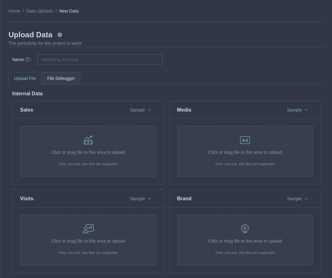 Ensure your data matches the project's granularity (set during project creation—e.g., daily, weekly).